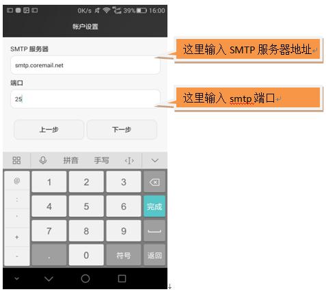 点击【下一步】按钮,SMTP服务器填入第一步查询所获得第一步查询所获得的【地址】和【端口】。